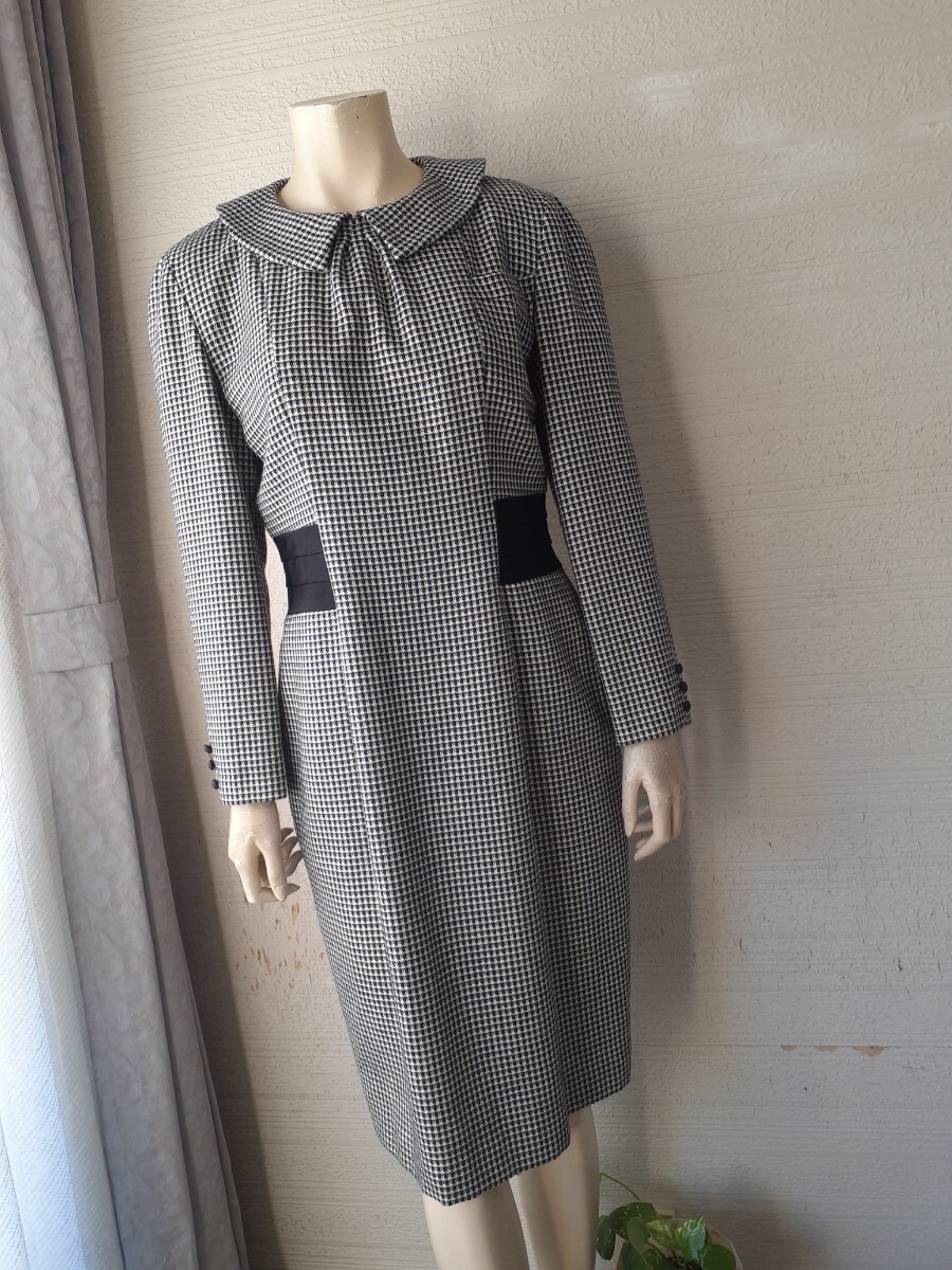 - ミラ・ショーン*mila schon★美品★ワンピース★シルク混★異素材使い★チェック★黒×白★42号