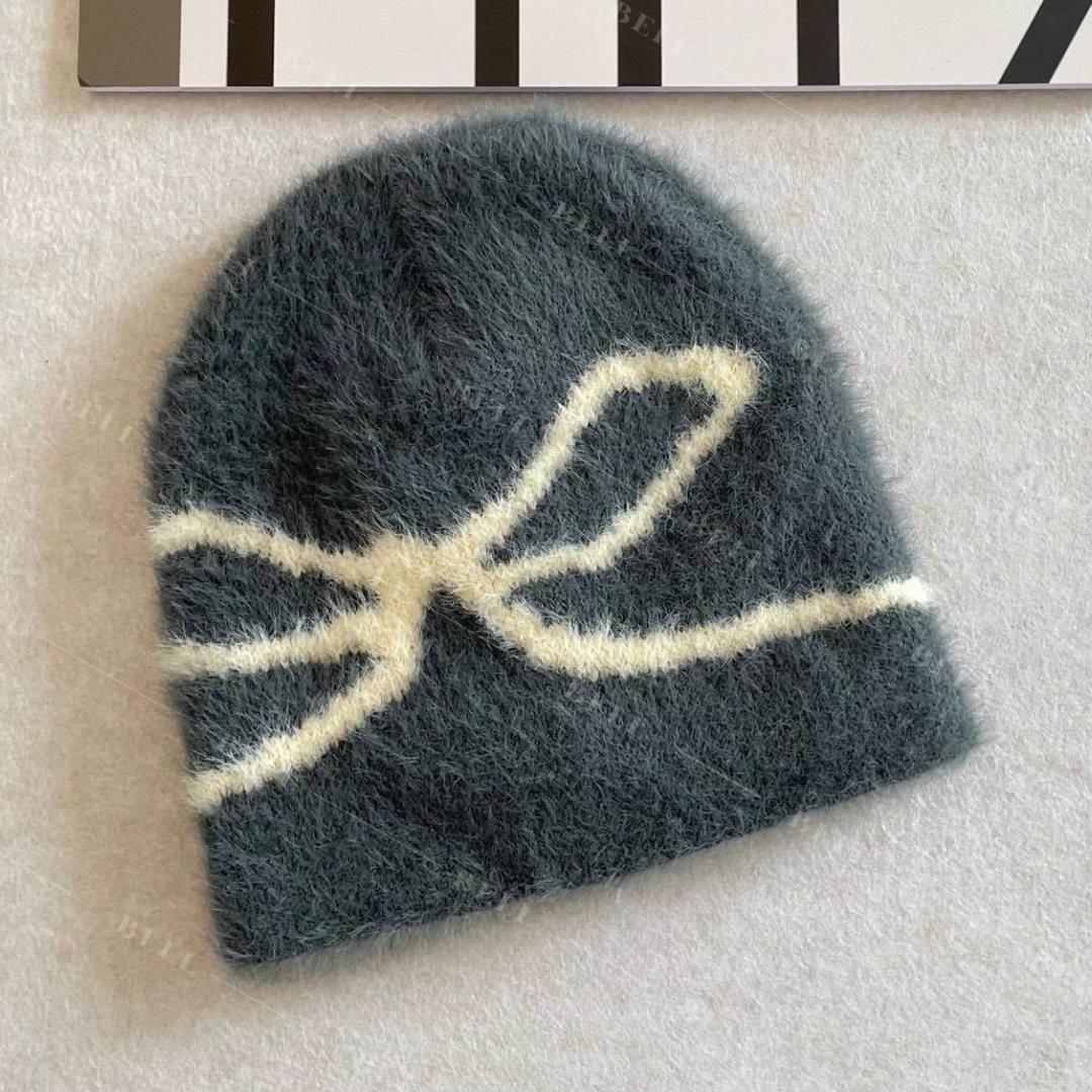 - ニット帽★リボン★グレー★韓国★かわいい★流行★秋冬★モヘア★あったかい★安い
