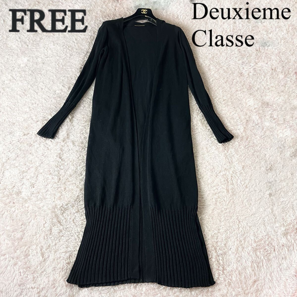 - Deuxieme Classe ドゥーズイェムクラス シルク リネン 麻 ロングカーディガン マキシ 羽織り ゆったり 長袖 ブラック 黒 フリーサイズ