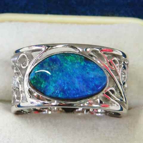 > 【値下げ交渉は質問欄より】素敵なデザイン性×2,15Ctのボルダーオパールリング!K18WG製デザイン指輪#12号☆☆