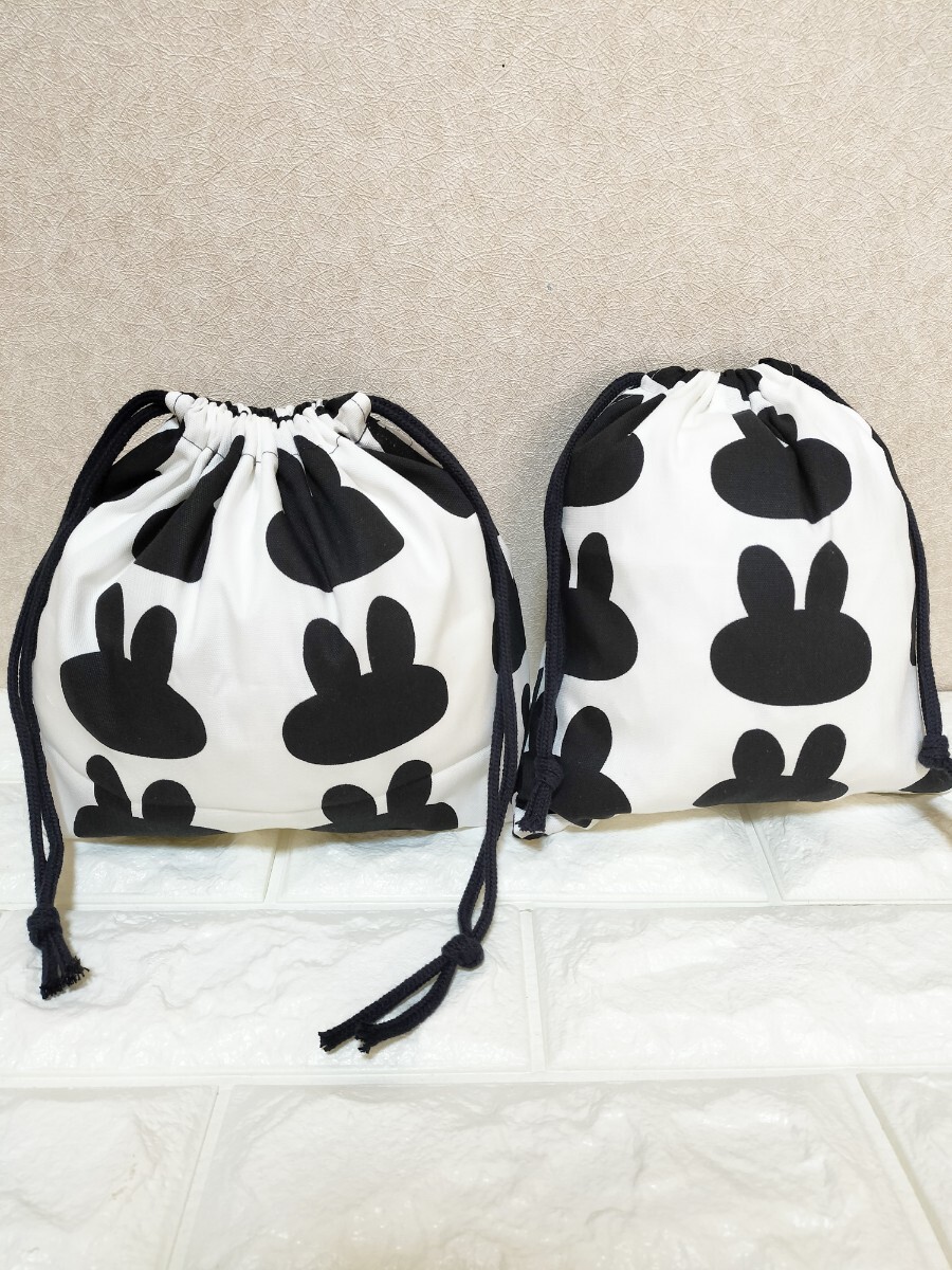 - 2点セットお弁当袋 巾着袋 ハンドメイド 給食袋 コップ袋 小物入れ 入園入学準備 うさぎ柄 コップ入れ 巾着