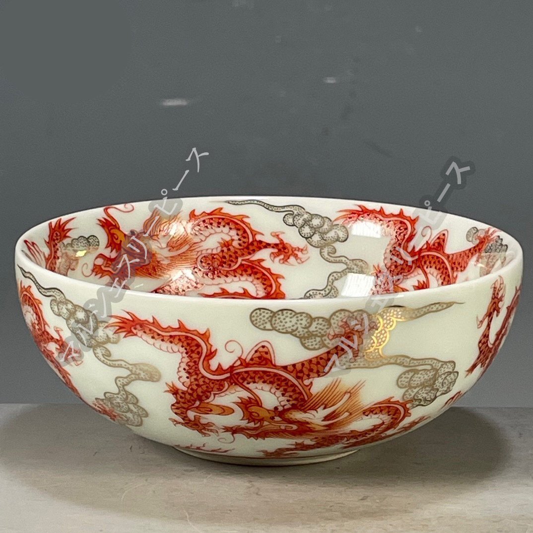 - 五彩龍紋碗 磁器 押手杯 主人杯 置物 磁器 中国陶磁 大清 乾隆 中国美術