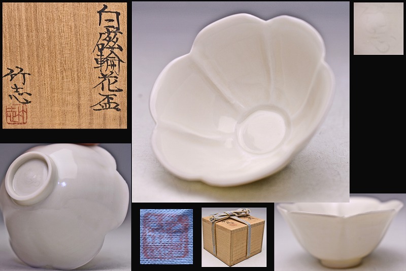 > 川瀬竹志 ★ 白磁輪花ぐい呑 ★ 共箱共布 ★ 川瀬忍 の弟 ★ 川瀬竹春 の子 ★ 川瀬竹翁 の孫 ★ 物故作家 ★