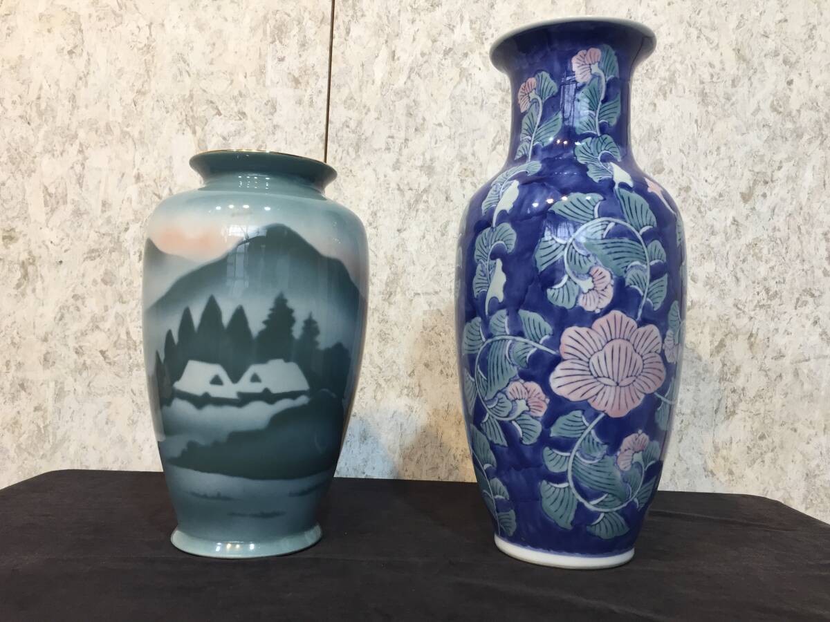 - 『 花器 2個セット 』若山作&中国製 花瓶 工芸品 陶芸 ガラス工芸 フラワー飾り 華道 古民家 茶道雑貨 ★古時家★