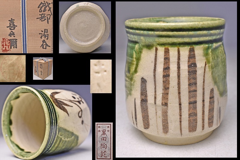 - 瀧口喜兵爾 ★ 織部湯呑 ★ 共箱共布 ★ 美濃 加藤十右衛門 師事 ★ 伝統的な図柄