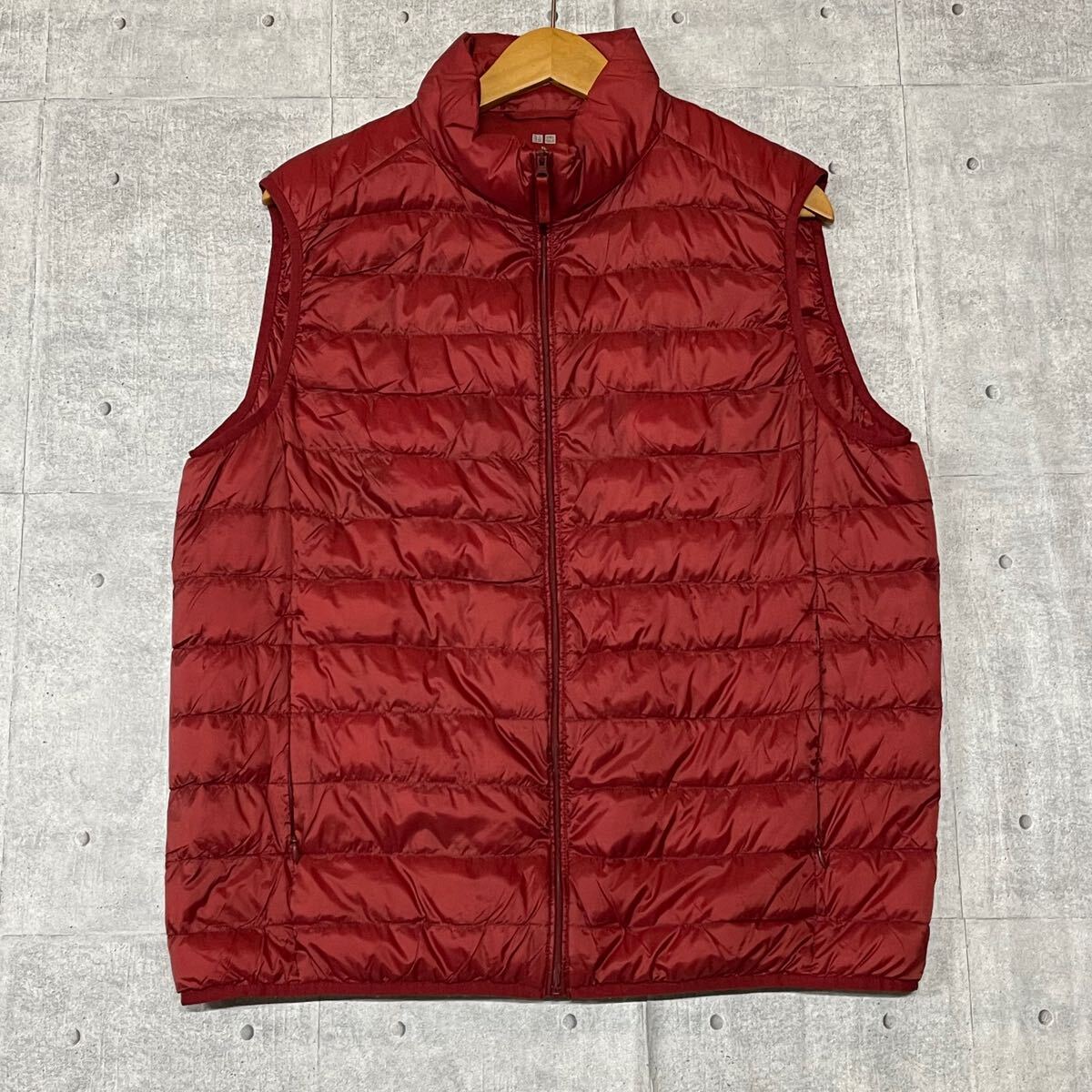 > 美品 UNIQLO LIGHT DOWN ダウンベスト 無地 単色 ユニクロ ライトダウン 撥水 防寒 保温 軽量 アウター 使用感うすい美品 早4195