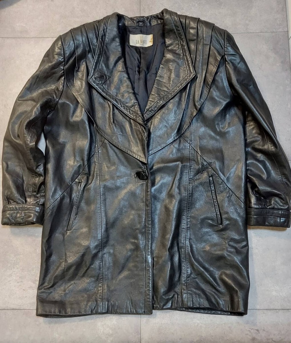 - LANAVE レザージャケット レディース アウター 裏地 ひし形ボタン おしゃれ 肩パットあり ブラック モード系