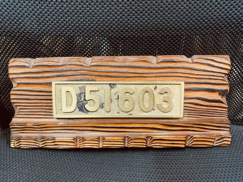> 昭和レトロ 当時物 D51形 蒸気機関車 国鉄ミニプレート D51603 ナンバープレート SL デゴイチ 台付 USEDです