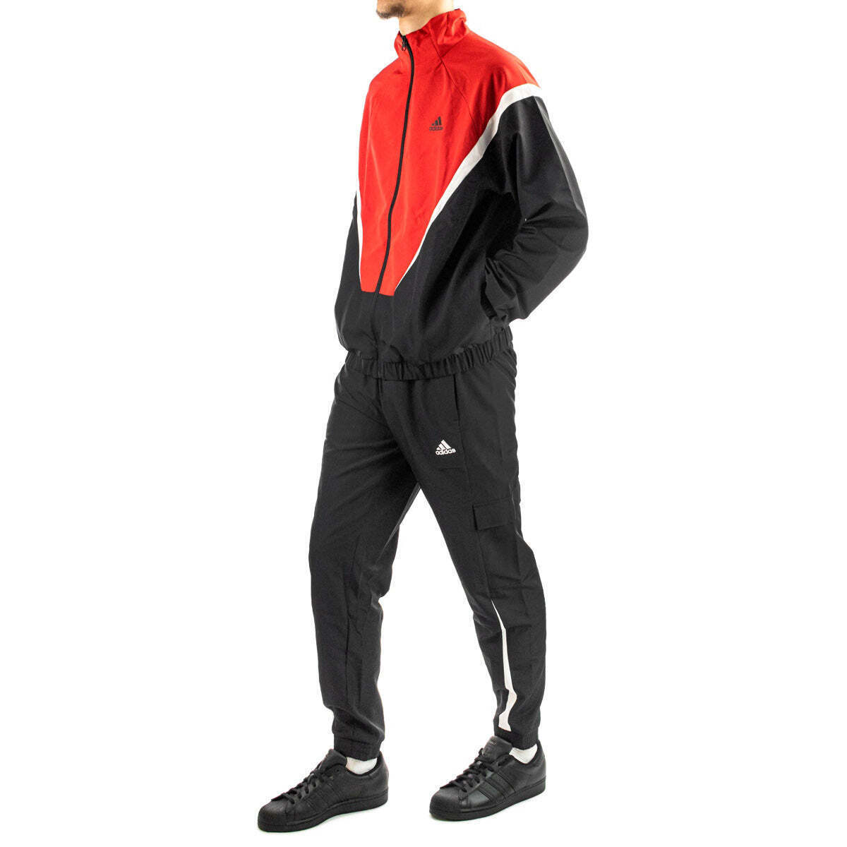 > 491 アディダス ADIDAS ウーブン ノーフード トラックスーツ 赤黒(M)