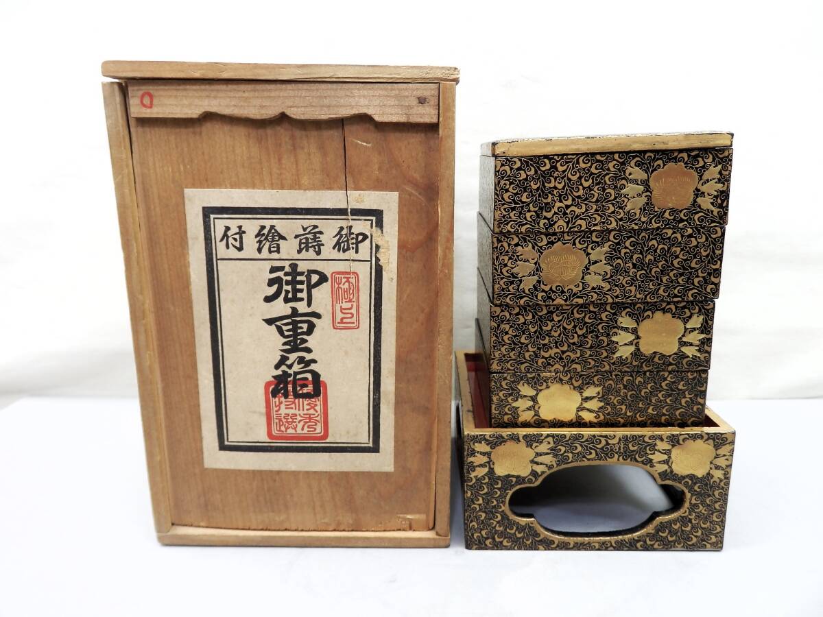 - 御蒔絵付 御重箱 木製 雛道具 約507g 現状品 売り切り