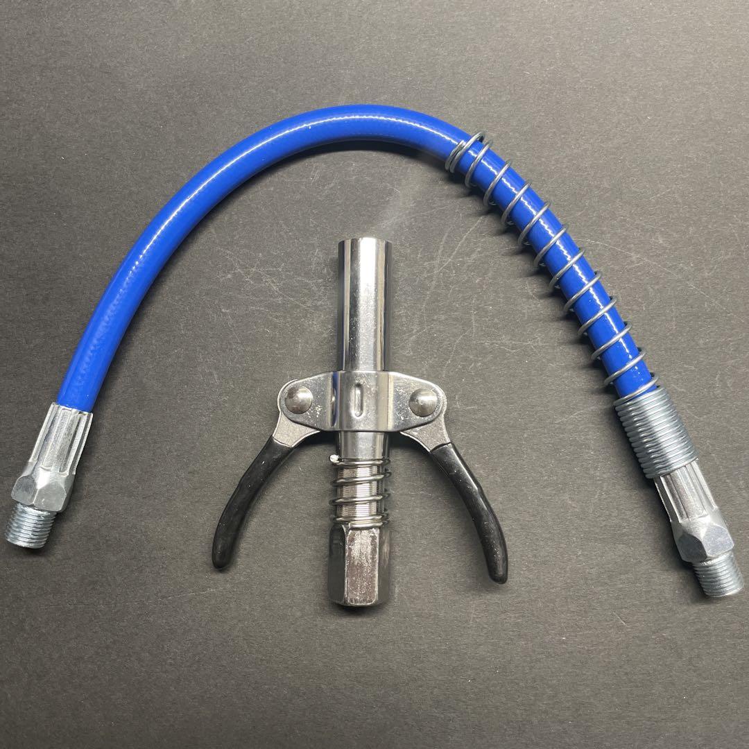 - グリスカプラー グリスガン ダブルハンドル ラバー付き フレキシホース トラック トレーラー 重機 グリースアップ グリス交換