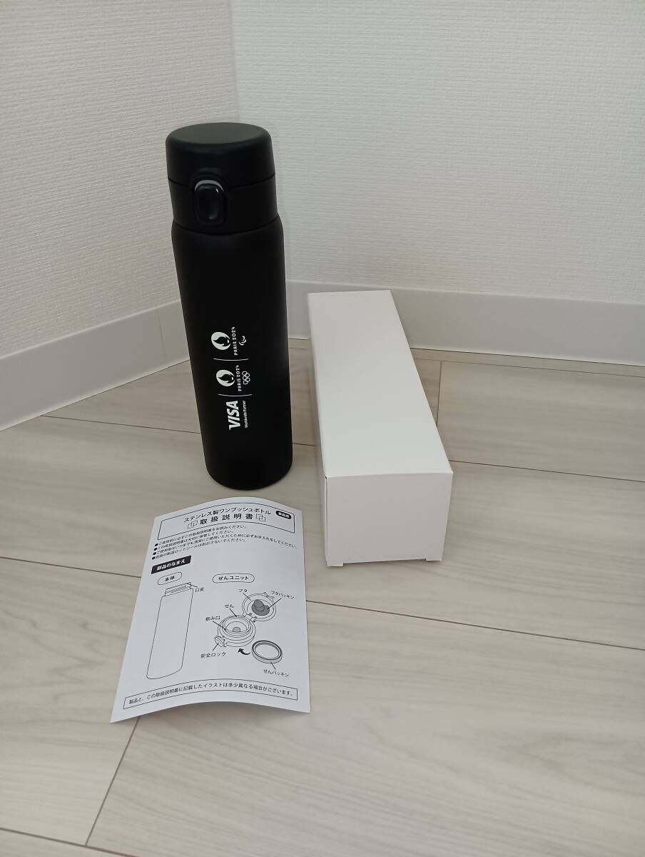 > 1000円☆パリ2024応援グッズ☆VISAオリジナル保温ボトル☆新品未使用品☆ステンレス製携帯用まほうびん ワンプッシュボトル☆0.48L