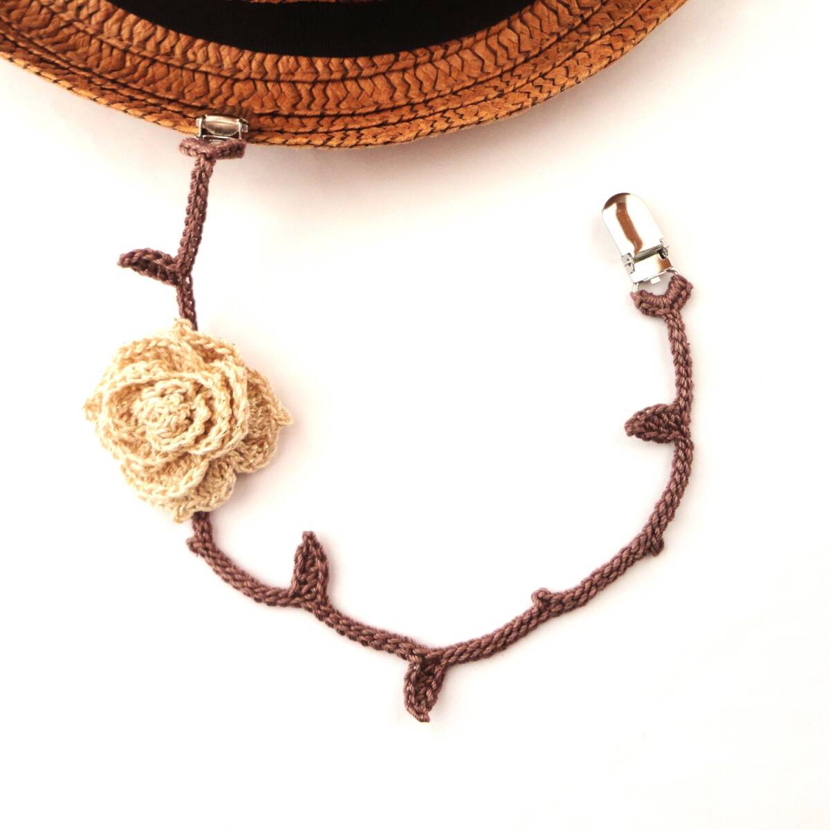 - バラの帽子クリップ*マルチクリップ*ベビークリップ*レース編み*GDラメ*ハンドメイド*b707