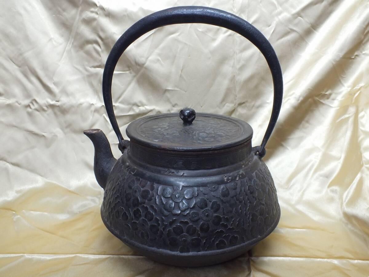 - 〇鉄瓶 山川堂 花模様 南部鉄器 やかん 茶道具 薪ストーブ