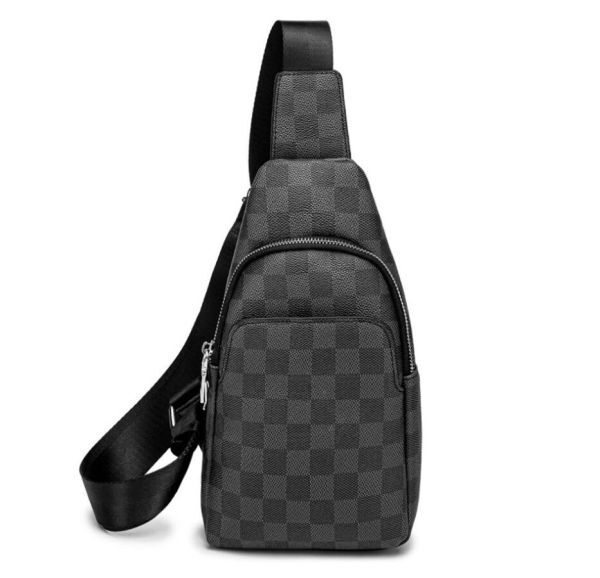 - 人気新品 * チェストバッグ ボディバッグ メンズ チェック柄 格子柄 トレンディ ファッション ビーガンレザー *