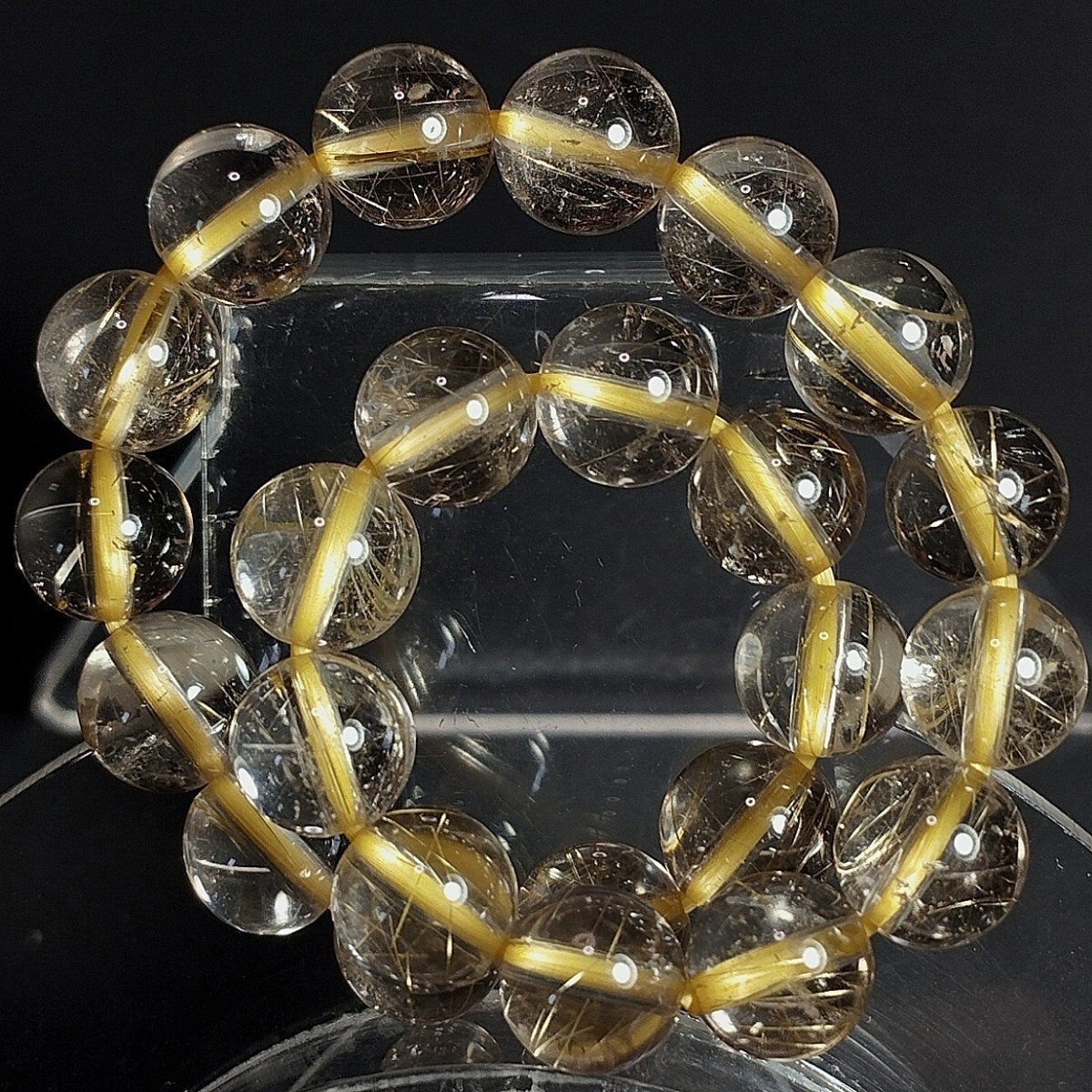 - ①高透明 ゴールドルチルクォーツ ブレスレット 7.5mm 16cm