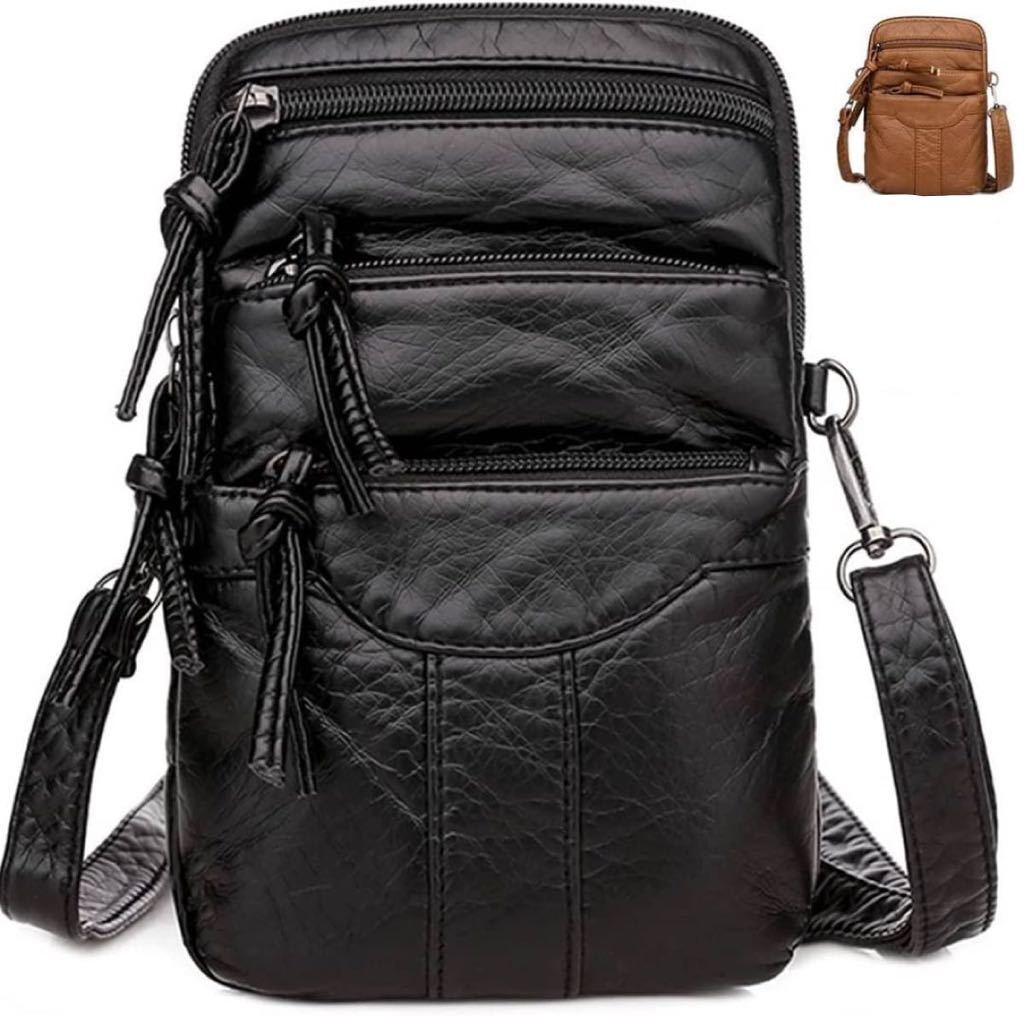 - スマホポーチ ショルダーバッグ 男女兼用 携帯ポーチ スマホポシェット 斜めがけ ブラック
