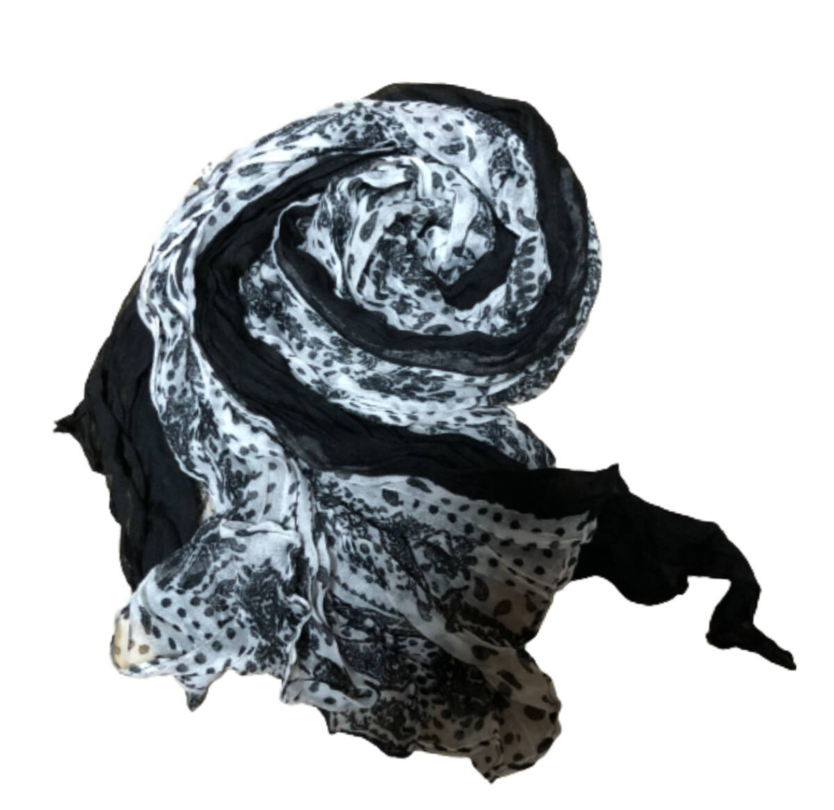 - 新品●送料無料【黒白】 大判 ナチュラル コットンスカーフ ショール 広げると大きくなる まとめると小さく 皺加工 プリーツ