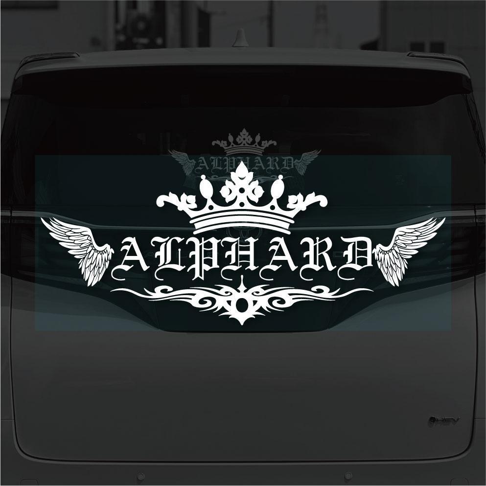 - 50㎝ アルファード 王冠 羽 カッティングステッカー 転写シール 白色