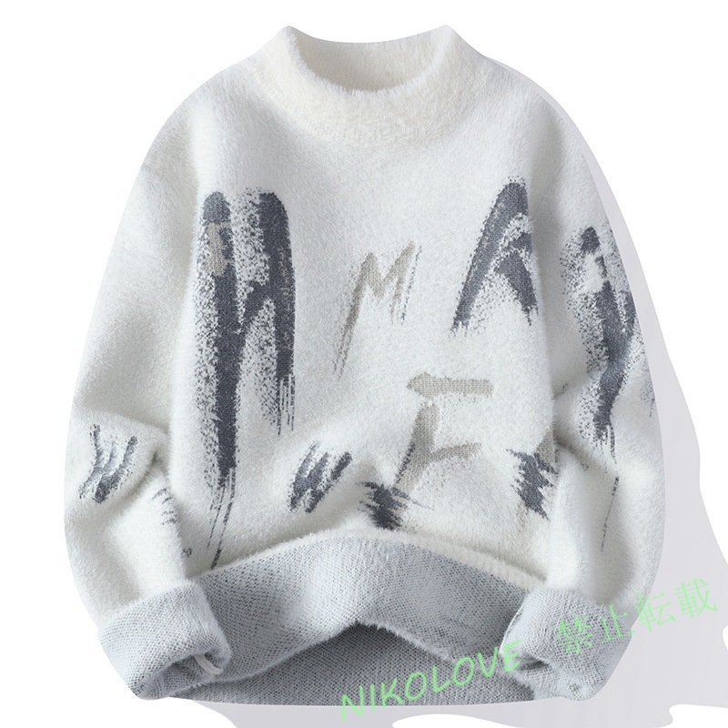 > 新品セーター メンズセーター カシミヤウール混 ハイネック プルオーバー 長袖 トップス 柔らかい M~ 4XLサイズ選択可 ホワイトAA879