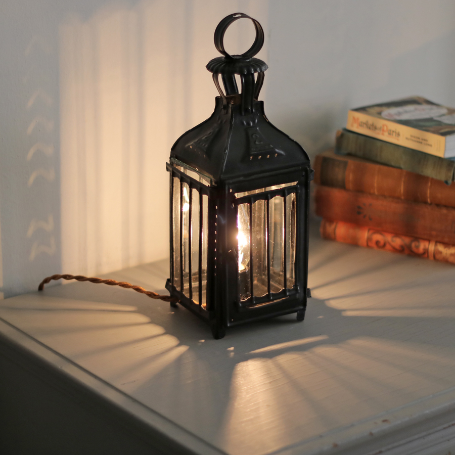 - 【フランス 1910年 黒 ランタンランプ 数字刻印2 四面ガラス】アンティーク A*/キャンプ 照明 カフェ フランスアンティーク アトリエ
