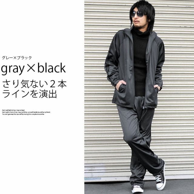 - 2ラインジャージ上下セットメンズジャージ ジャージ上下セット セットアップ 023313新品グレー×ブラック4L