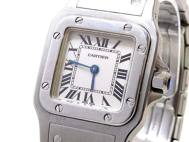 > カルティエ サントス SM 時計 ■ ステンレス ホワイト 文字盤 クォーツ レディース 腕時計 Cartier □6L