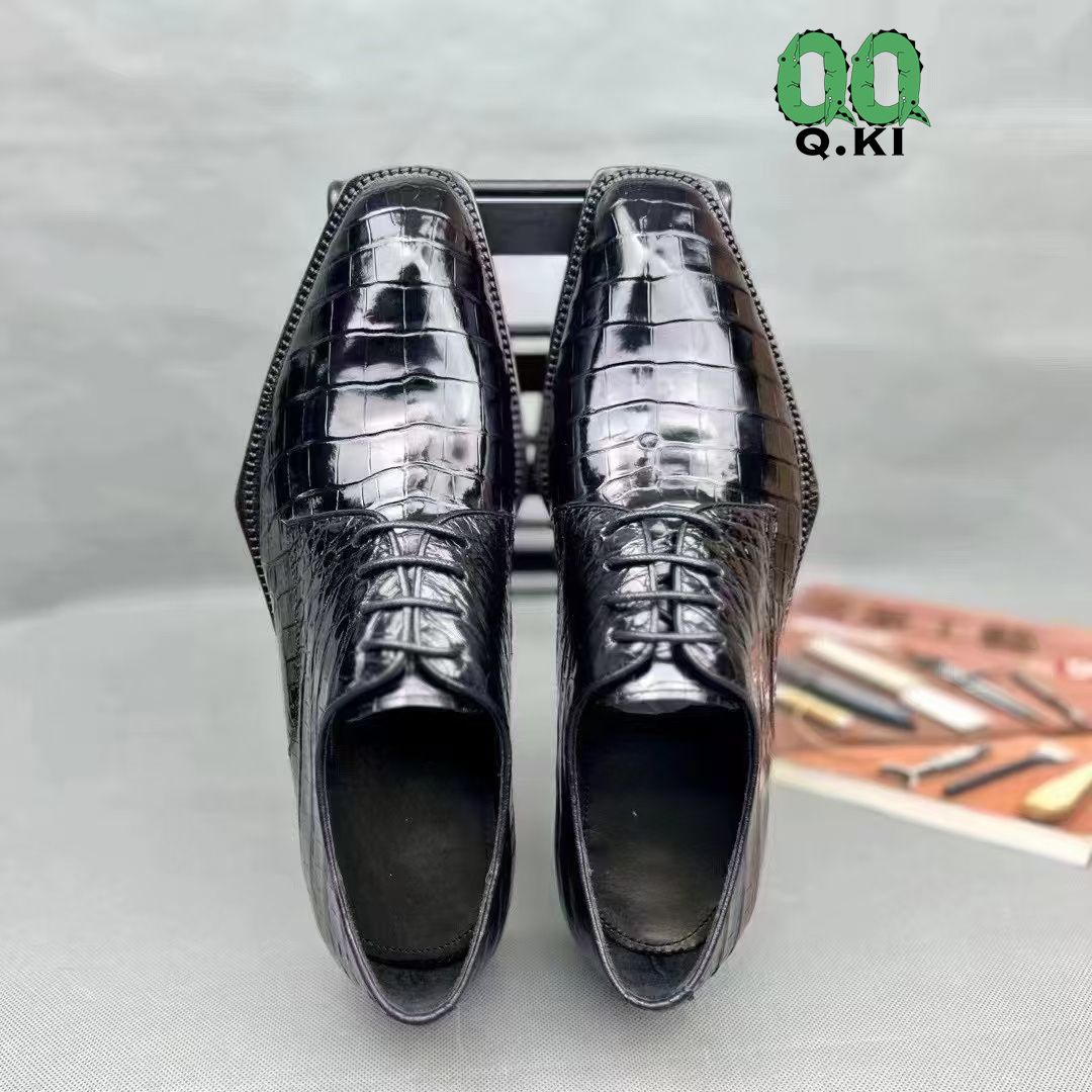 - 最高級 ワニ革 腹部分使用 メンズビジネスシューズ クロコダイル グッドイヤー製法 完全手作り 本革ソール 24.0-27.0