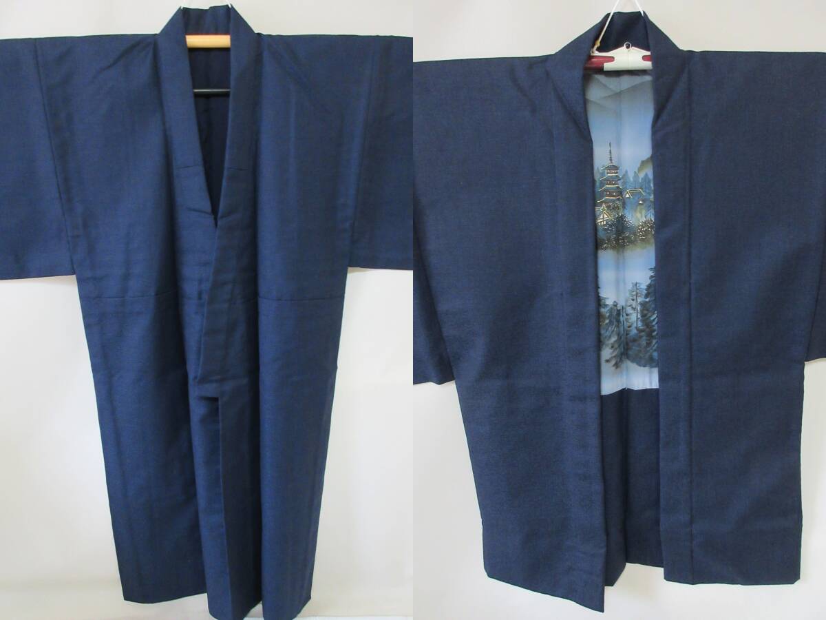 - 46-1 着物羽織セット 紺 無地 アンサンブル 仕立て上がり 和装 身丈約145㎝