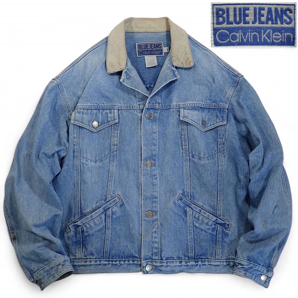 > 6255/Calvin Klein BLUE JEANS USA製 デニムトラッカージャケットXL●コーデュロイ襟 Gジャン ジージャン カルバンクライン ビンテージ古着