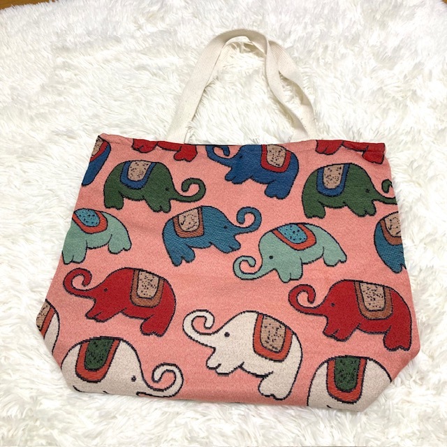 - ★即決★送料無料★匿名発送★新品★バンコク買い付け★ 象柄 象さん モノグラム トートバッグ タイ製 大きめ ピンク