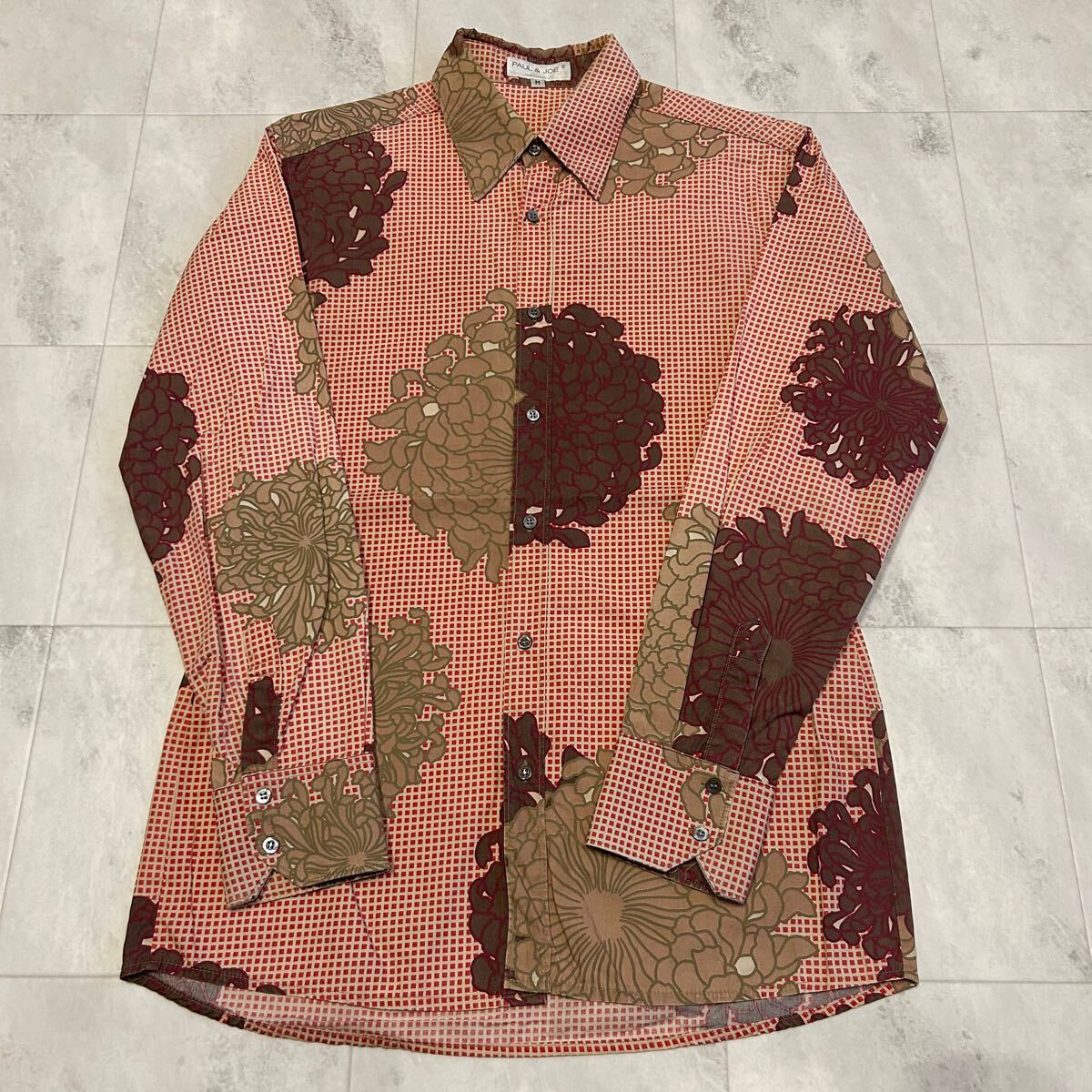 - 高級 FRANCE製 PAUL&JOE ポール&ジョー 総柄 花柄 チェック ビンテージ 長袖シャツ 綿100%