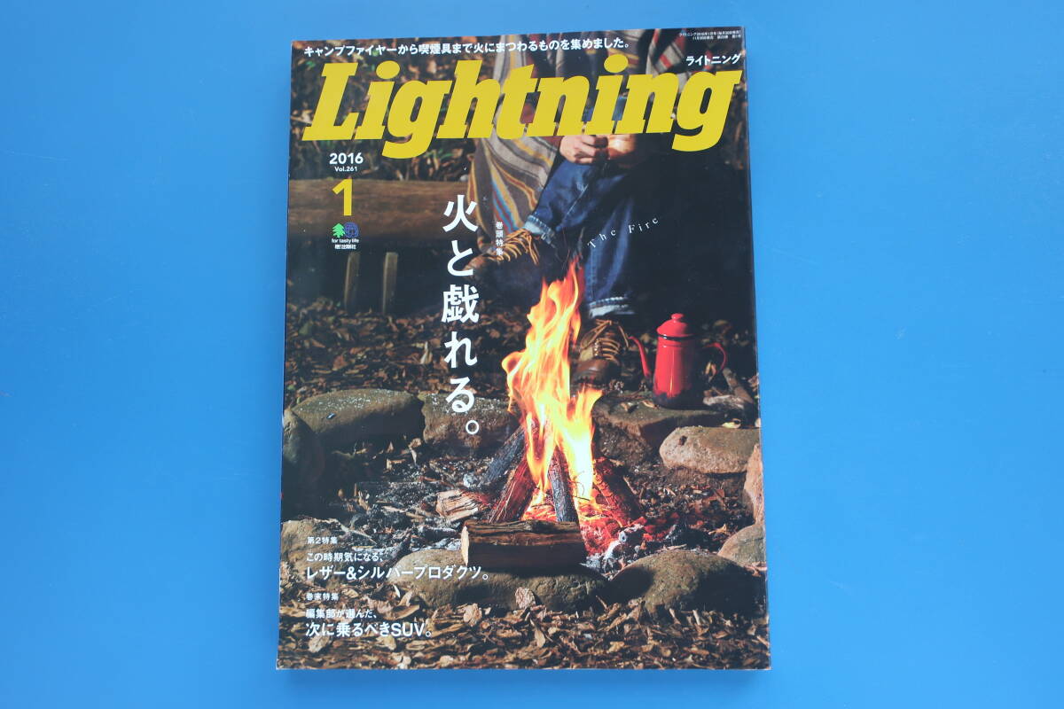 > Lightning/ライトニング/2016年1月号/特集:火と戯れる/THE FIRE/最良の焚き火台/キャンプ/ガソリンランタン/原始的な火付け解説/アウトドア