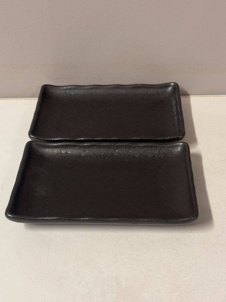 - 黒 焼き皿 角皿 長角皿 小 2枚 和食器