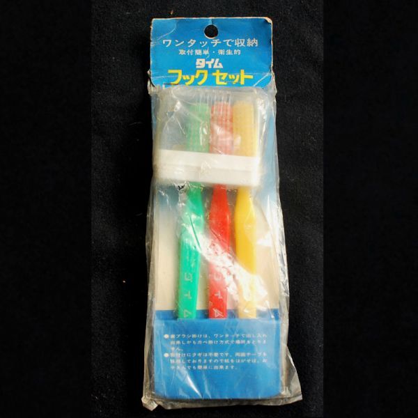 > ●2049● 日本製レトロ ( 1970 年代 ) 雑貨 ◆ ワンタッチで収納の歯ブラシセット! 「 タイム フックセット 」◆ 今に無い色合い!
