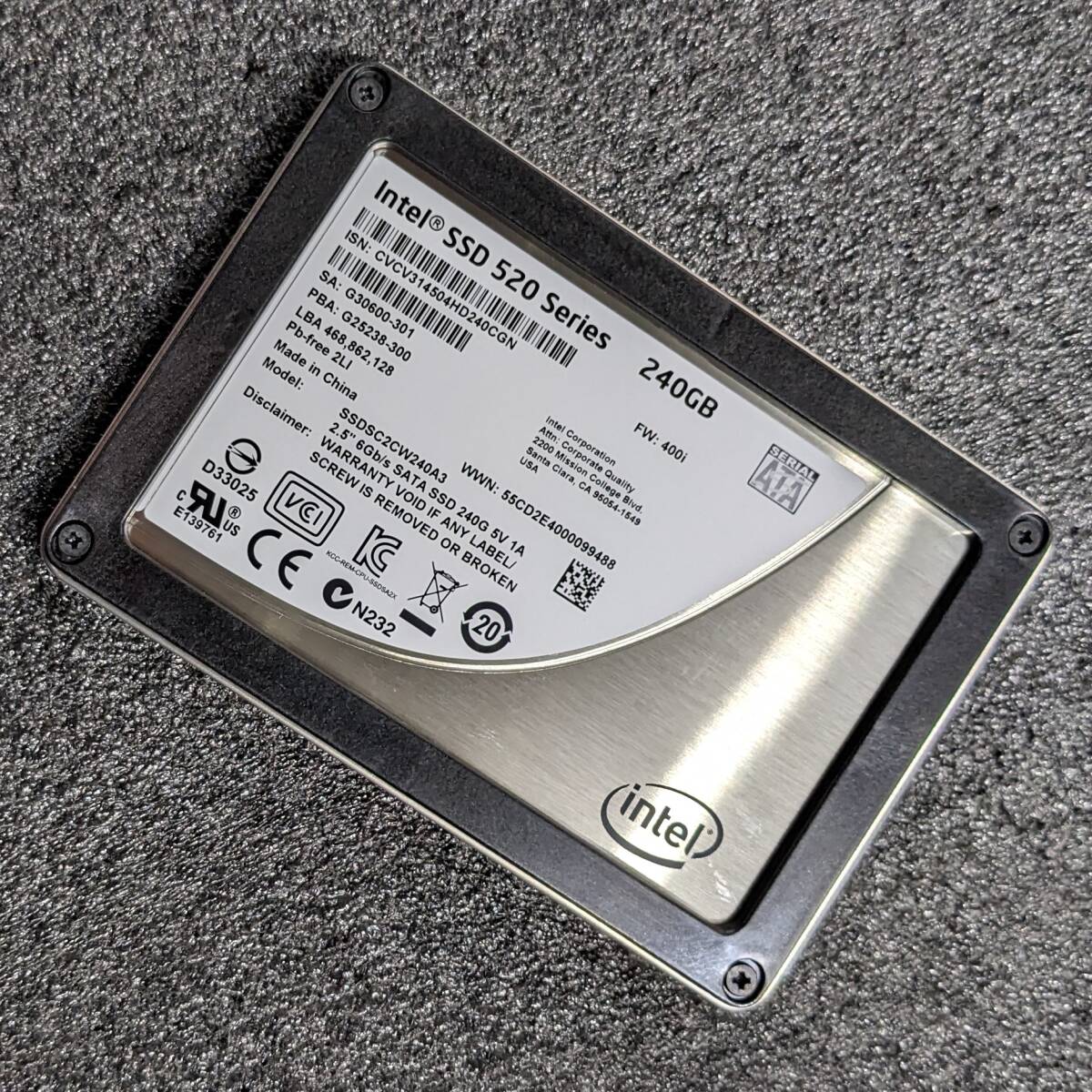 > 【中古】INTEL SSD 520 Series 240GB SSDSC2CW240A3 [2.5インチ SATA3 9.5mm厚 MLC 健康状態:100%]