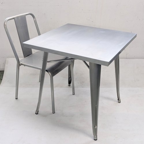 - ★<セット>テーブル&チェア 艶ありシルバー 未使用 訳あり〈8622504〉★