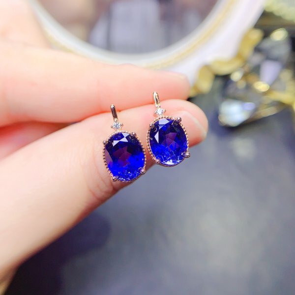 925シルバーのナチュラルサファイアピアス、8x10mm、ラグジュアリージュエリー