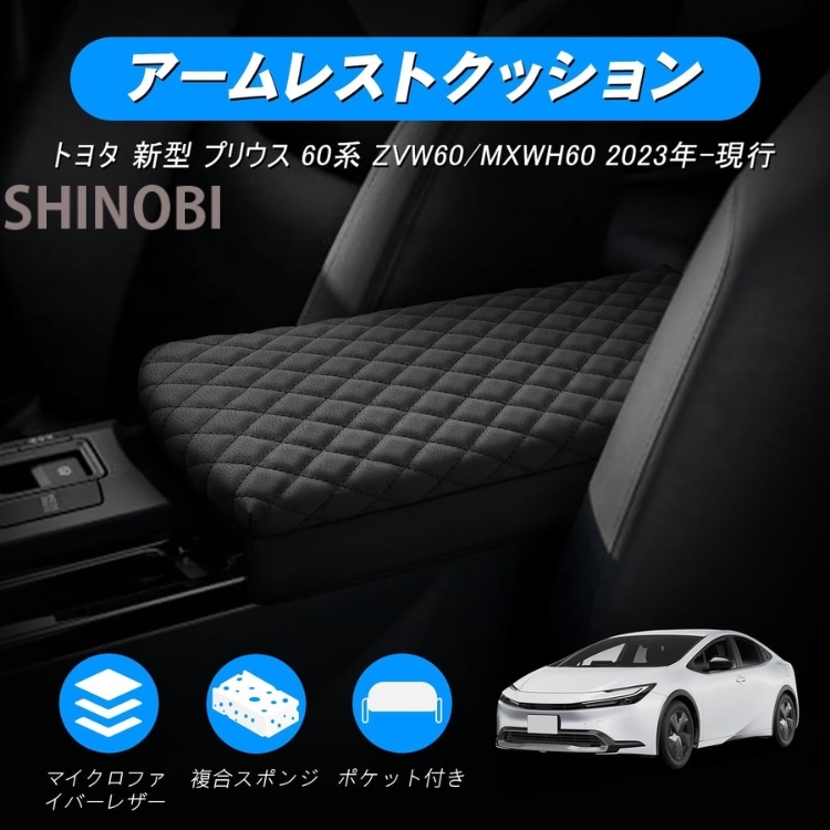 - 5代目 2023年-現行 プリウス 60系 アームレストクッション 高品質レザー コンソールボックス保護カバー クロスステッチ柄