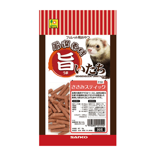 - 【メール便可/同梱不可】旨いたち ささみスティック F151 SANKO(三晃/サンコー) 小動物 フェレット 鶏肉 国内加工 国産 3cmサイズ おやつ