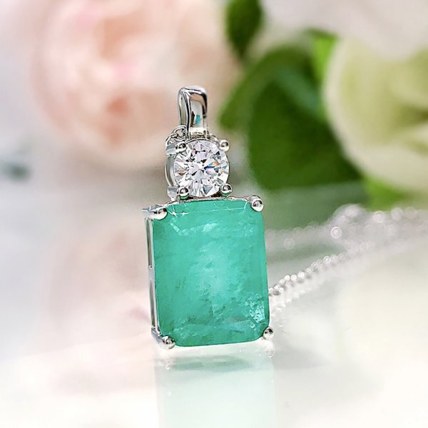 - 女性用パライバトルマリンペンダントネックレス、8×10mm、ハイカーボンダイヤモンド◆最初の入札者様に限り、開始価格で購入可能 Kn