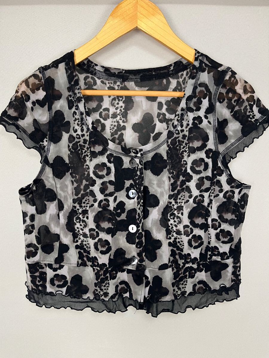> PINETA ピネタ 半袖 シースルー 夏物 レース 総柄 ブラック系 サイズM-L ポリエステル 日本製 ミセス レディース