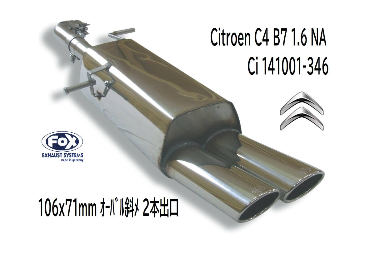 > Citroen C4 B7 1.6 NA FOX ステンマフラー 2本 出口 新品未使用