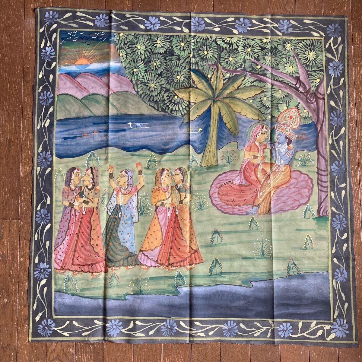- 約50年前(1980年)にインドで購入した布製の手描きアート/「クリシュナ」/87 X 86cm
