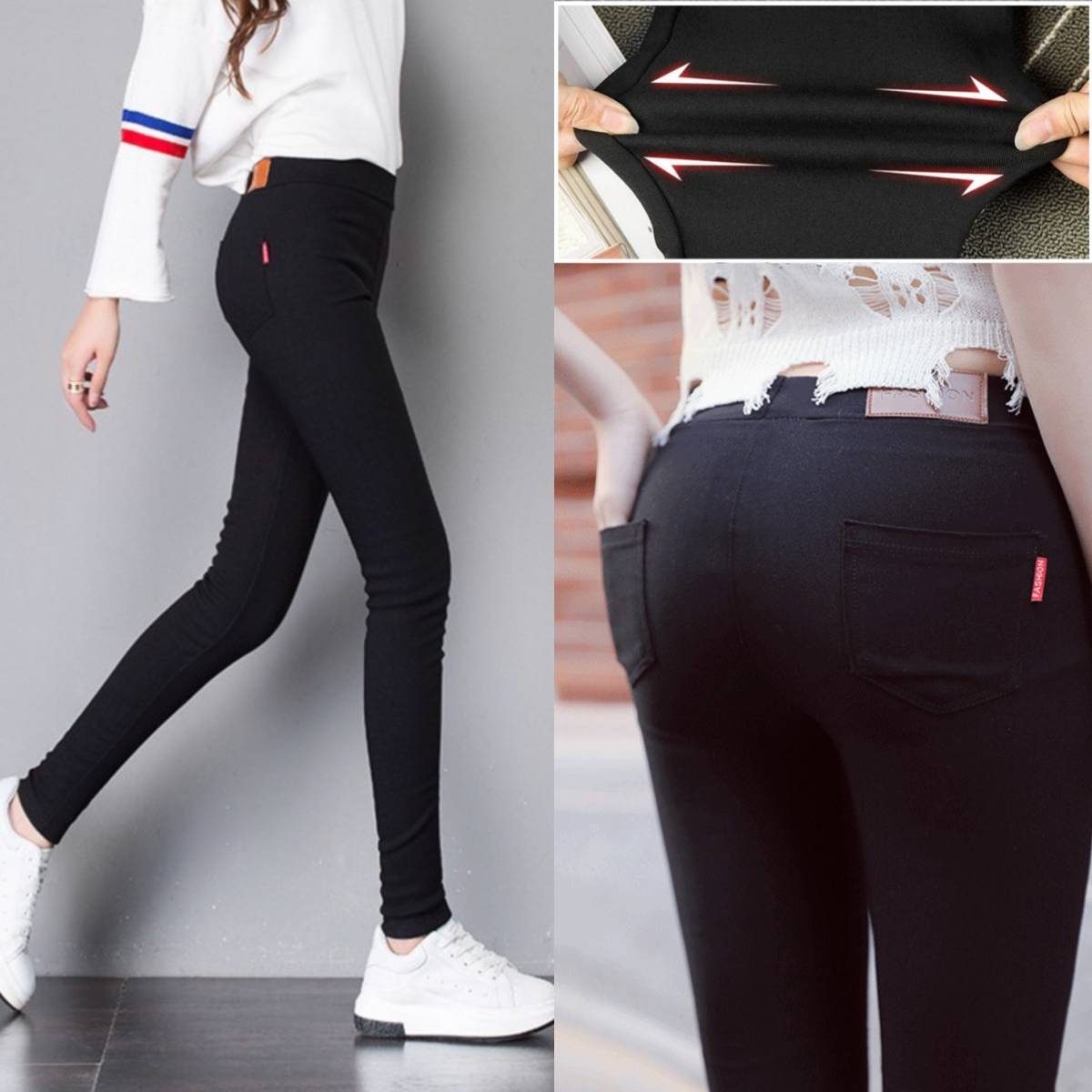 - 送料無料★即納 新品 強力ストレッチ スリムパンツ ウエストゴム レディース 黒★XXL