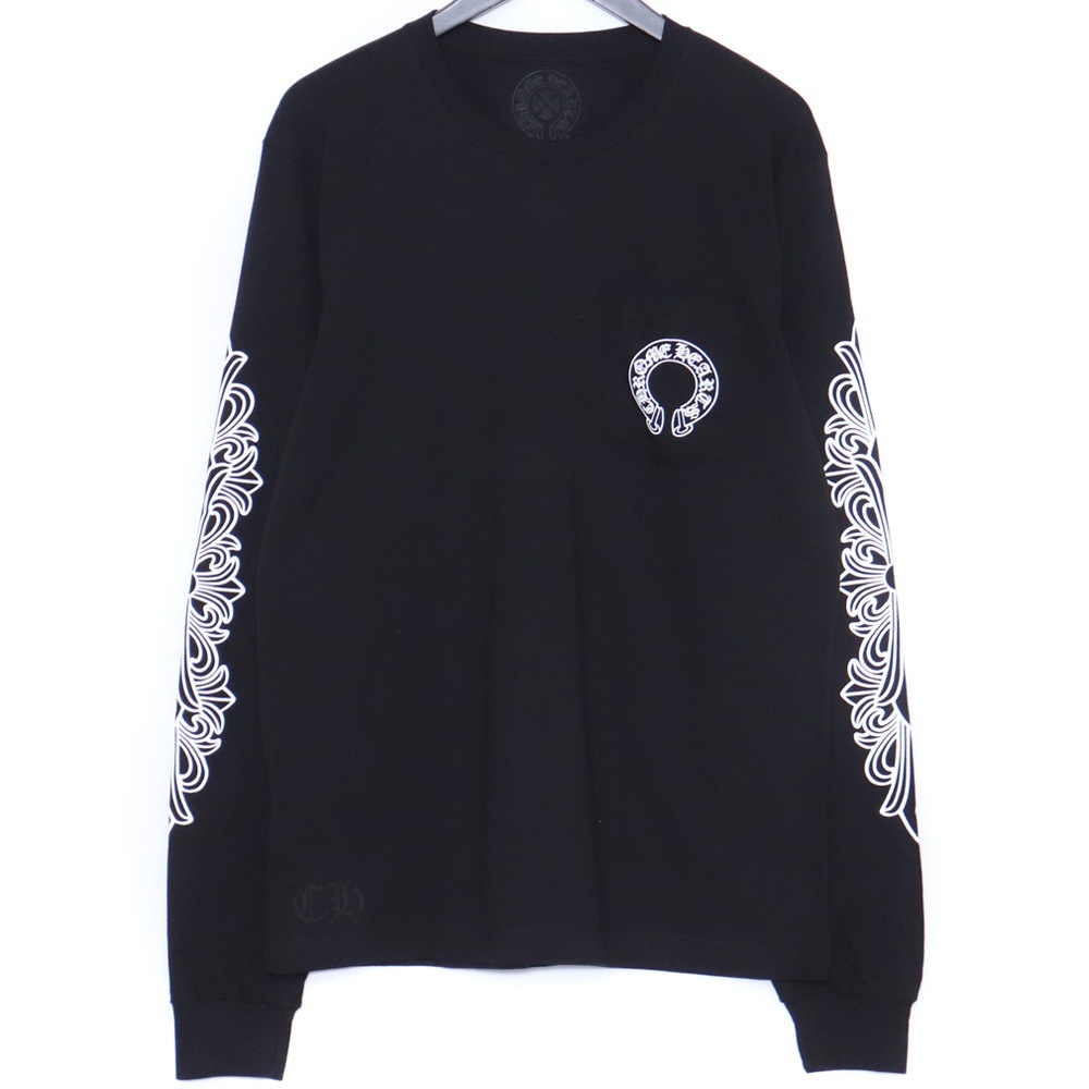 > 未使用 CHROME HEARTS ロングTシャツ ホースシュー&フローラルクロス Lサイズ ブラック クロムハーツ 長袖カットソー horseshoe l/s tee