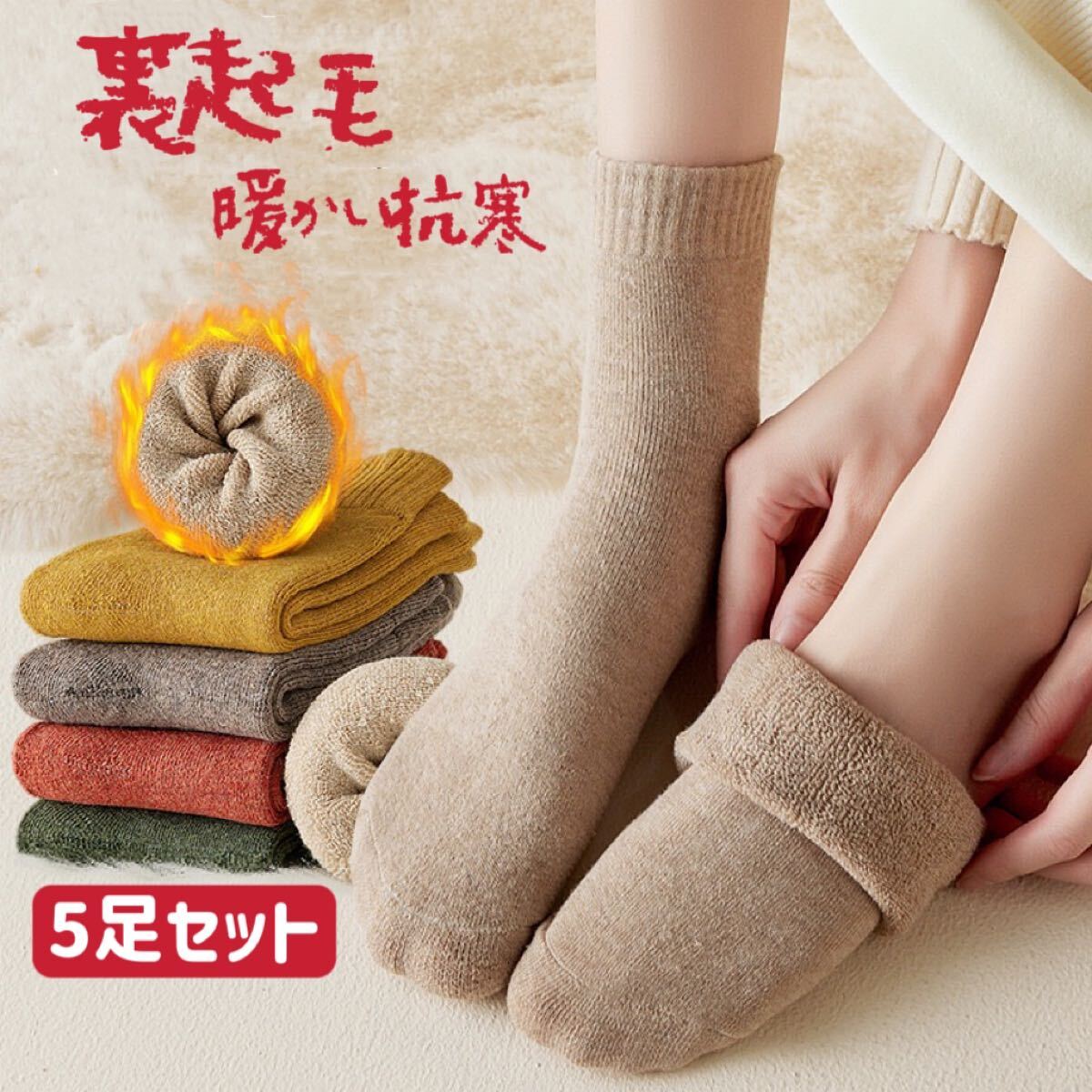 - まるでこたつ 暖かい抗寒 厚手レディースソックス無地 5足セット まとめ売り クルー丈 裏起毛 冷え性対策 女性靴下