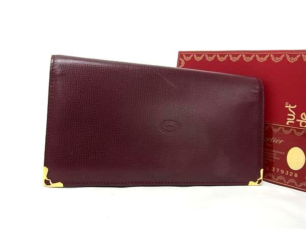 > ■極美品■ Cartier カルティエ マストライン レザー 二つ折り 長財布 ウォレット 小銭入れ 札入れ ボルドー系 BM3102