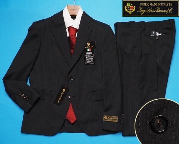 - 新品12.9万円 大手百貨店扱い 春夏『ロロピアーナ ZELANDER DREAM 伊製生地』ウール100% ストライプ スーツAB5黒(B) 1512481