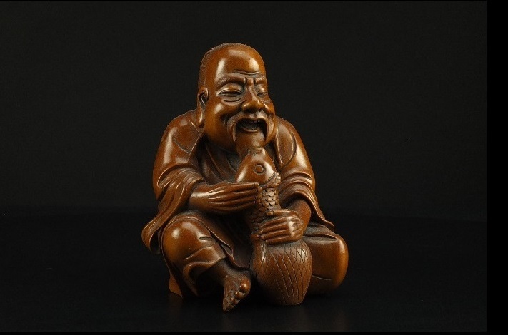 - 中国・唐物 仏像 美術 木彫り 鯉仙人 菩薩